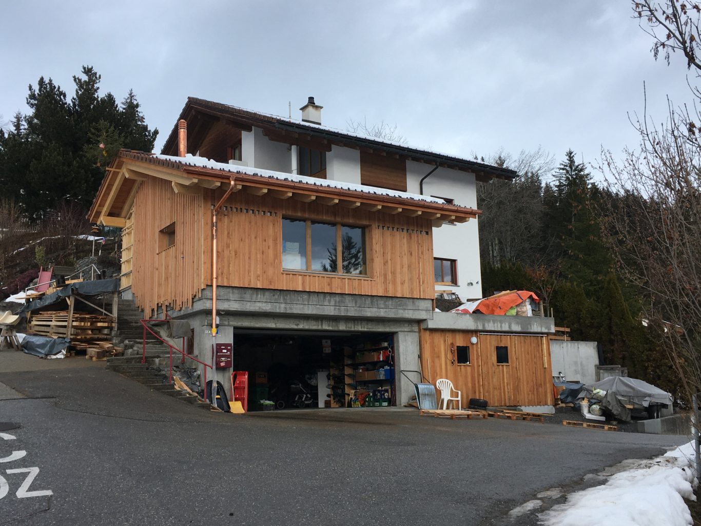 An diesem Einfamilien-Neubau in Laax durfte ich die komplette Fassadenarbeit über die zwei oberen Stockwerke machen. Insgesamt 7 Lagen dienen zur Isolation aus natürlichen Baustoffen und natürlich geben die Fassadenbretter dem Haus eine wunderschöne Ansicht.